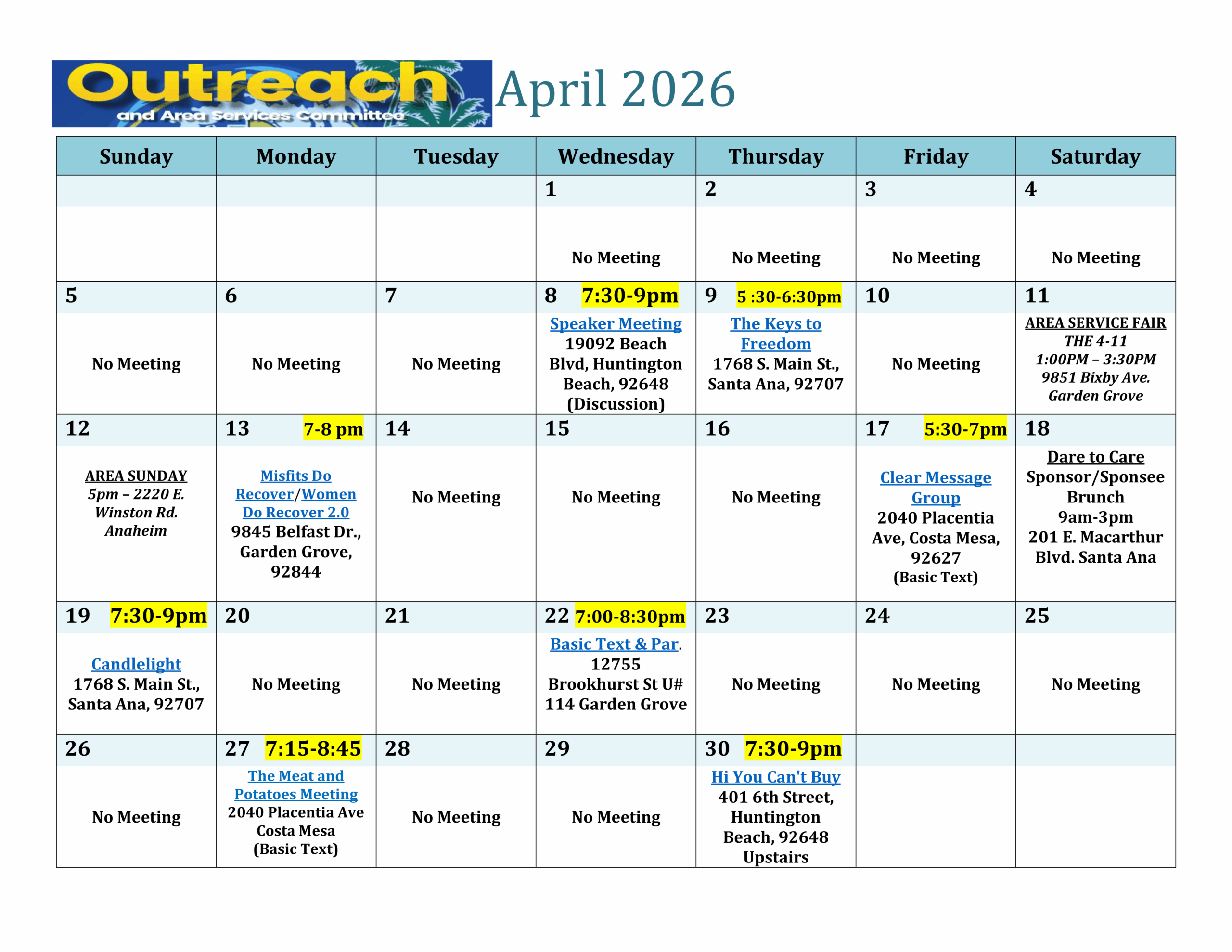 Welcome to Orange County California Area of Narcotics Anonymous.